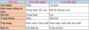So Sánh Chi Tiết Van Chân Gang Và Inox